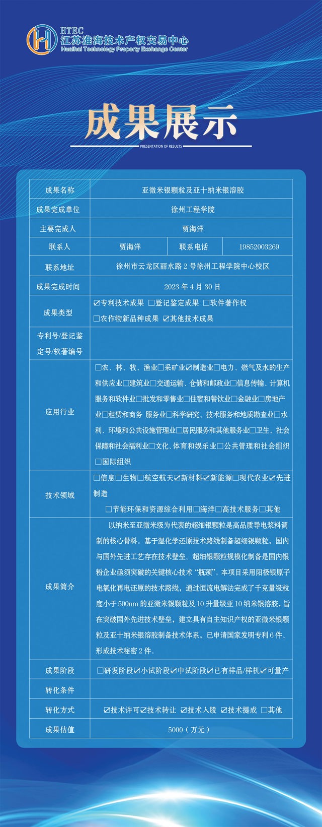 江苏淮海技术产权交易中心是由江苏淮海科技城、徐州市科技局和中国矿业大学国家大学科技园联合出资设立的,专业从事技术成果转化、转移与技术产权交易的服务机构。